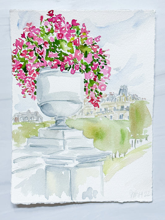 Jeanne's watercolors are staples in my home. She chicly captures both the charm of ordinary objects and idyllic places with a distinctive warmth. Whether it's a collection of her topiaries on a side table, blush Paris windows immersed in blooms as the centerpiece of a gallery wall, or a sketch of a classic Veuve bottle that rests on a bar cart, her paintings are celebrations and conversation pieces surrounding life's beauty and simple joys. Each time a watercolor catches my eye, it makes me smile and dream.
